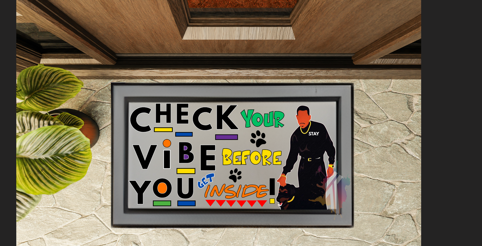 The show Martin was a popular fan favorite show to watch. This scene in particular with Martin and the toy stuffed rottweiler was one of the funniest scenes ever. If you know this scene then you will understand this door mat design. Snag this door mat to let people know that they need to check their vibes before they come inside and feel the wrath of your real or fake dog lol. You can apply this design on any door mat of your choice.