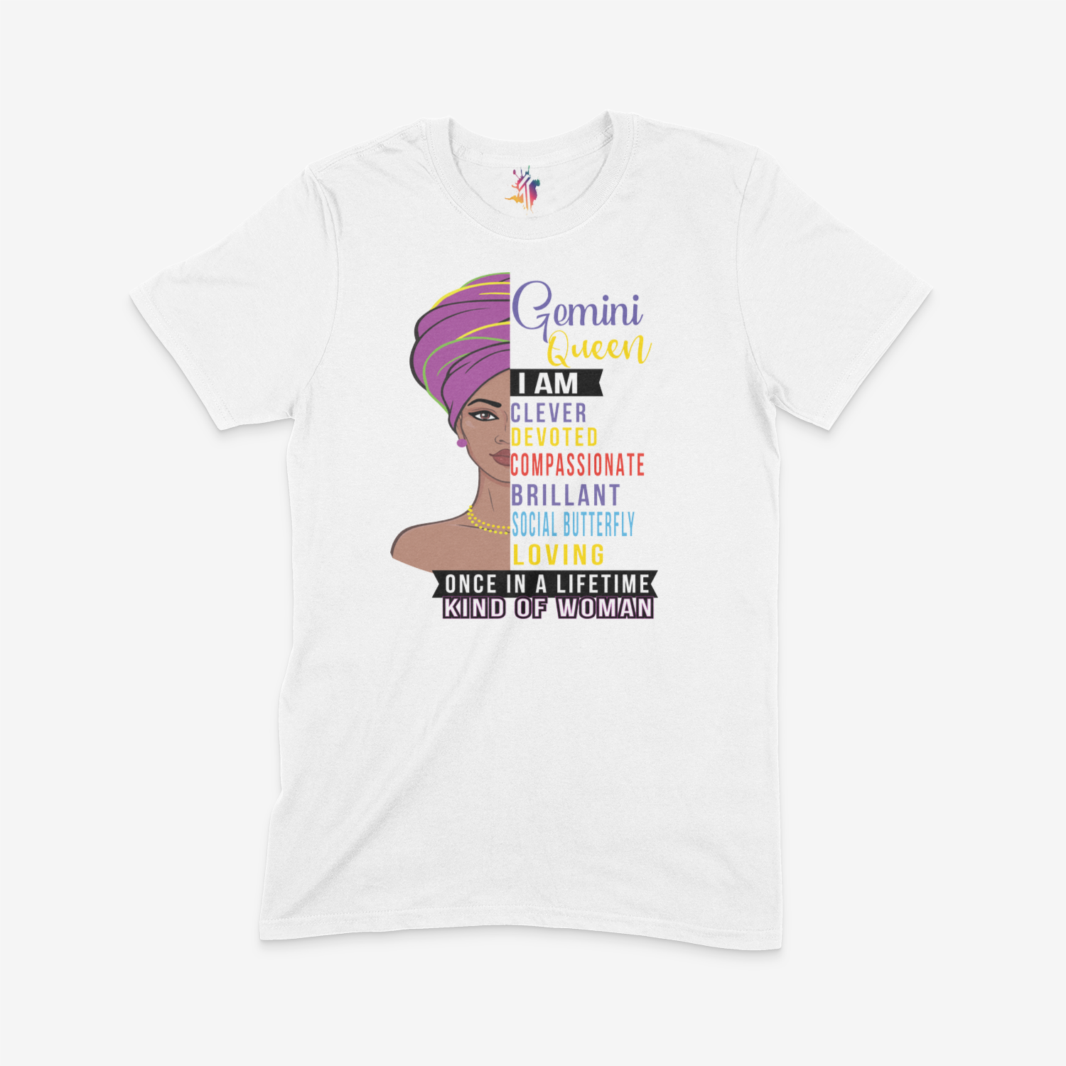 Introducing the Gemini Queen t-shirt! Crafted with ultra-soft cotton, get ready to feel like royalty in this beautiful piece. Featuring a stunning picture of a powerful Gemini Queen and uplifting words, embrace the beauty of your zodiac sign and show your strength with this tee.