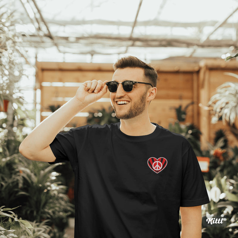 Stylish and meaningful, this More Good Less Evil short-sleeve cotton shirt is perfect for those who believe in doing good in the world. Boasting a beautiful heart and peace sign design on the front and powerful, uplifting words on the sleeve, this unisex shirt will inspire and motivate. Who says fashion can't make a statement?